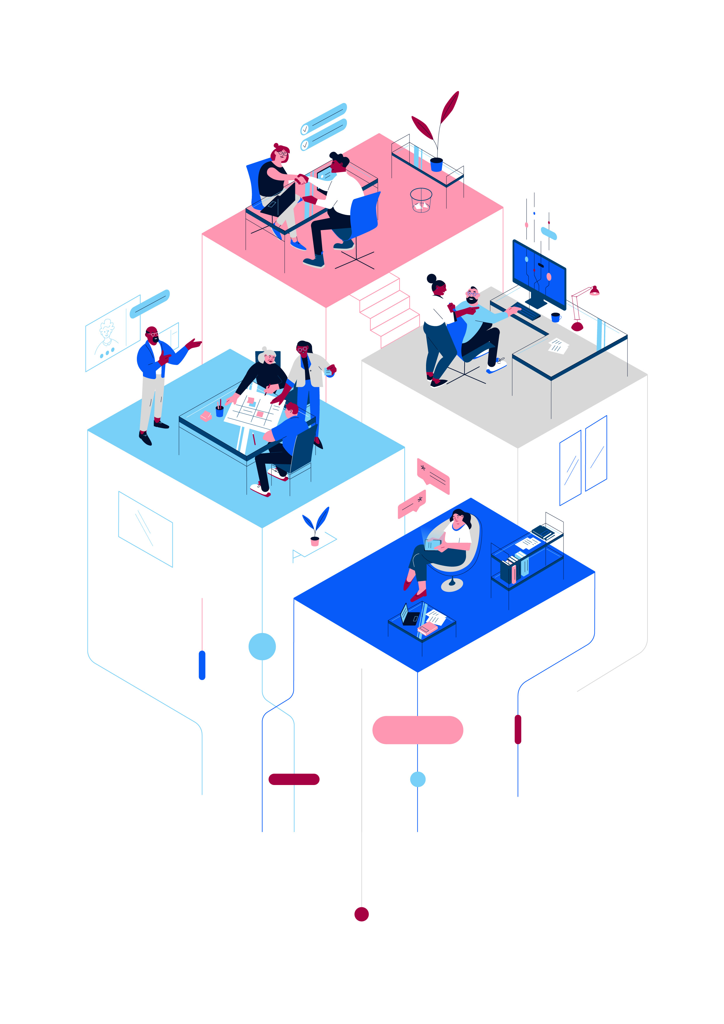 In collaboration with Goldener Westen I have created a modular illustration representing the topic “Office of the Future”